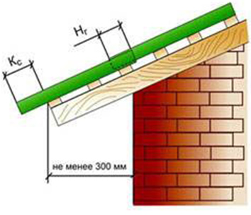 При монтаже кровли из профнастила необходимо устройство обрешетки. Обрешетка выполняется из стальных прогонов или досок. Как правило, профнастил применяется для устройства кровли в зданиях, где длина ската составляет менее 12 м. Если на скат накладывается несколько листов профнастила, определение величины горизонтального нахлеста производится в зависимости от величины угла наклона кровли. (табл. 1).
