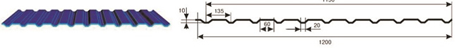 Предназначен для организации несущих конструкций и устройства скатных кровель. Материал выполнен из оцинкованной стали, толщиной 0,45-0,9 мм и имеет трапецевидную форму профиля усиление конструкции и повышенную стойкость к изгибу обеспечивают дополнительные канавки.